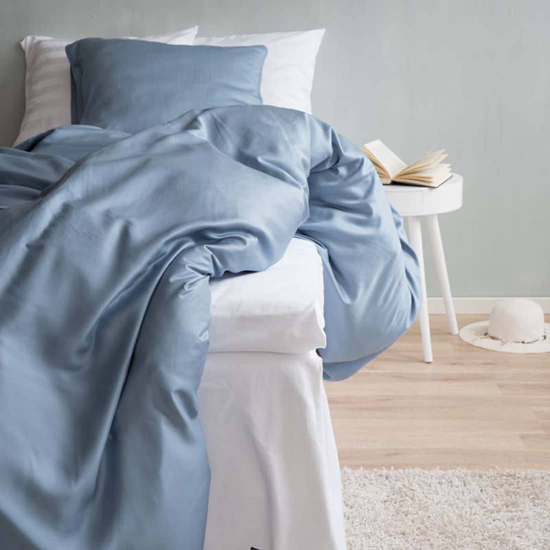 Underbart mjuka och sköna sängkläder i 100% miljöriktig bambu. Bambu är ett miljöriktigt material som med bambuväxtens runda fibrer skapar en mycket skön känsla; som att sova på moln! Lakanen har en exklusiv tyngd och ger en lyster som påminner om siden. Bambumaterialet är temperaturreglerande, det värmer när det är kallt och svalkar när det är varmt. Detta himmelsblå påslakanset består av ett påslakan som är 150×210 cm och ett örngott på 50×60 cm. Påslakanet har en större öppning nedtill som stängs med tre knappar. Inuti påslakanet finns även snören i hörnen om man vill knyta fast täcket. Örngottet har klassisk stängning med övervik utan knappar.