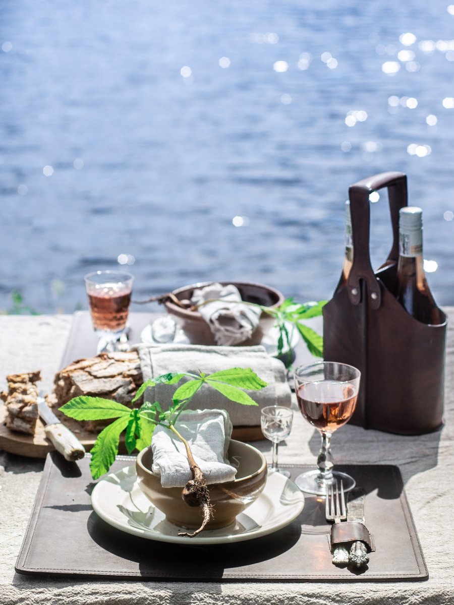 Vinväska som rymmer 2 flaskor. Alltid lika rätt. Snygg till fest, praktisk till picknicken och utmärkt som gåva tillsammans med favoritvinet. Tillverkad i äkta skinn. 33x18x10,5 cm.