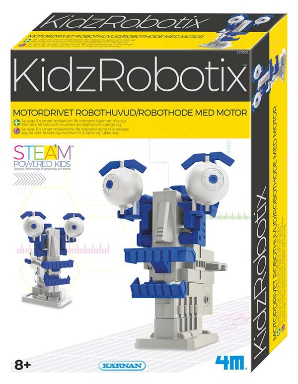 Med detta häftiga robot-set från Egmont Kärnan har du ett 4M motordrivet robothuvud som kan röra ögonen från sida till sida och öpnna/stänga munnen. Bygg ditt eget robotansikte och se dess coola egenskaper.