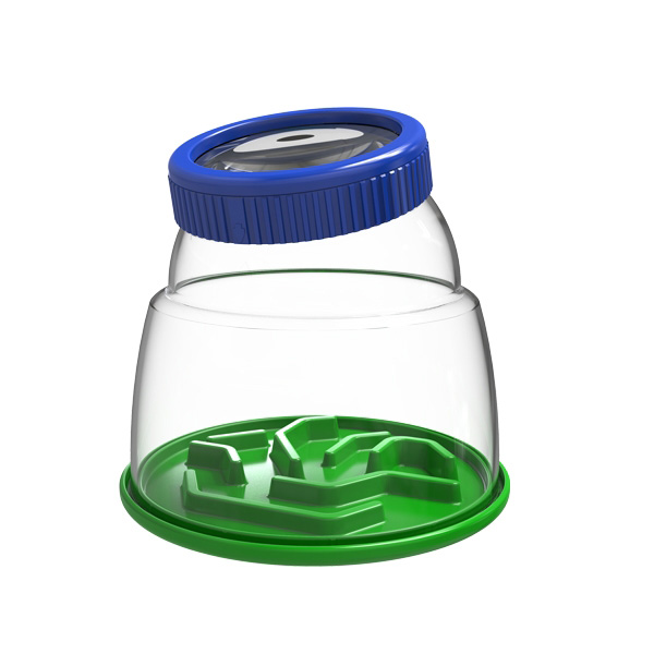 Innehåller uppsamlingsbehållare med förstoringsglas som förstorar upp till 5 gånger.