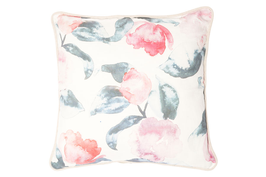 En vacker blommönstrad kudde i bomull med dold dragkedja.