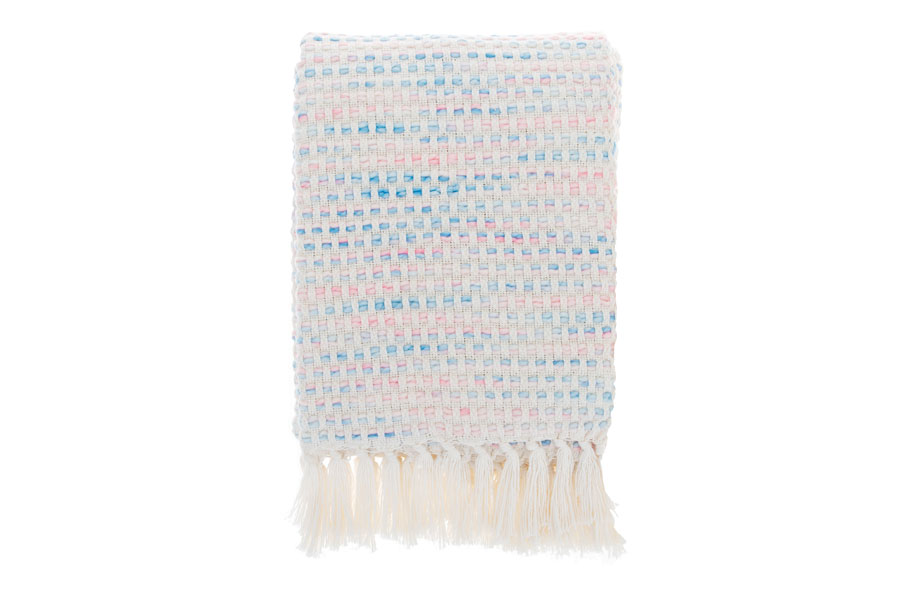 Denna ljuvliga bomullspläd i diskreta färger och vita fransar är perfekt för mysiga stunder i soffan när du bara vill gosa ner dig med en varm dryck och värma frusna fötter och axlar. Förutom sin praktiska funktion kan den bli en vacker inredningsdetalj i ditt hem som bidrar till en hembonad känsla. På grund av de lugna färgerna, ger pläden en ombonad och mysig känsla.