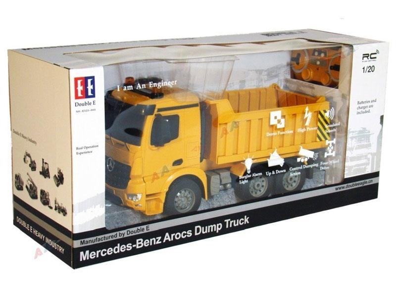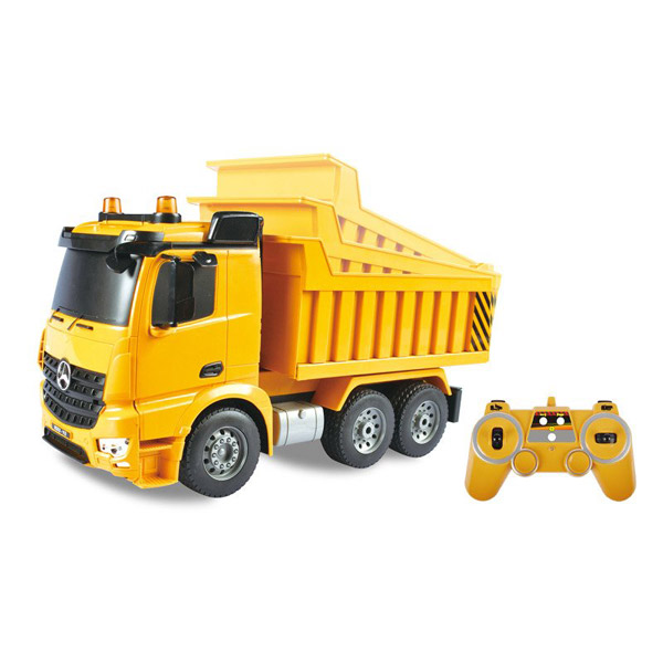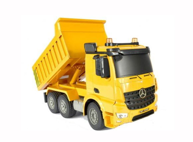 En tippbil med realistiskt utseende i skala1:20 i märket Mercedes. Tippbilen har en tillhörande kontroll så att du kan styra den och låta den tippa av det den har på flaket. Den har många effekter såsom ljuseffekter, fyrhjulsdrift, automatisk demonstration, möjlighet att styra flaket för tippning, ljudeffekter såsom tuta men alla kan stängas av vid behov. Tippbilen kommer att ge många timmar av skoj för både de yngsta och äldre användare. Du kommer att känna dig som en riktig arbetare på en byggarbetsplats!