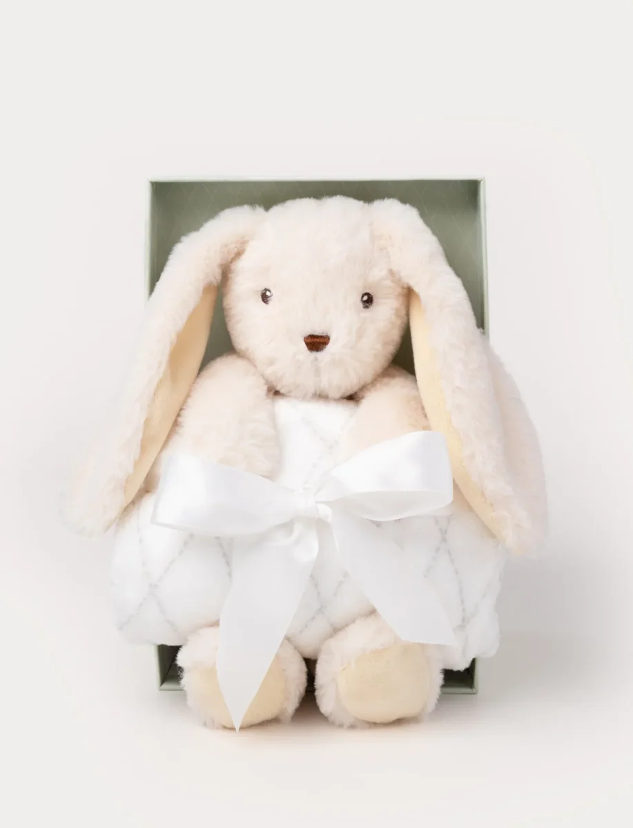 Ge bort en kärleksfull start i livet med detta fina presentset, där den gosiga kaninen Svea möter en mjuk fleecefilt – perfekt för både lek och vila. Allt levereras i en stilren presentförpackning, redo att ges bort vid dop, babyshower eller som en varm välkomsthälsning till en ny liten familjemedlem.
